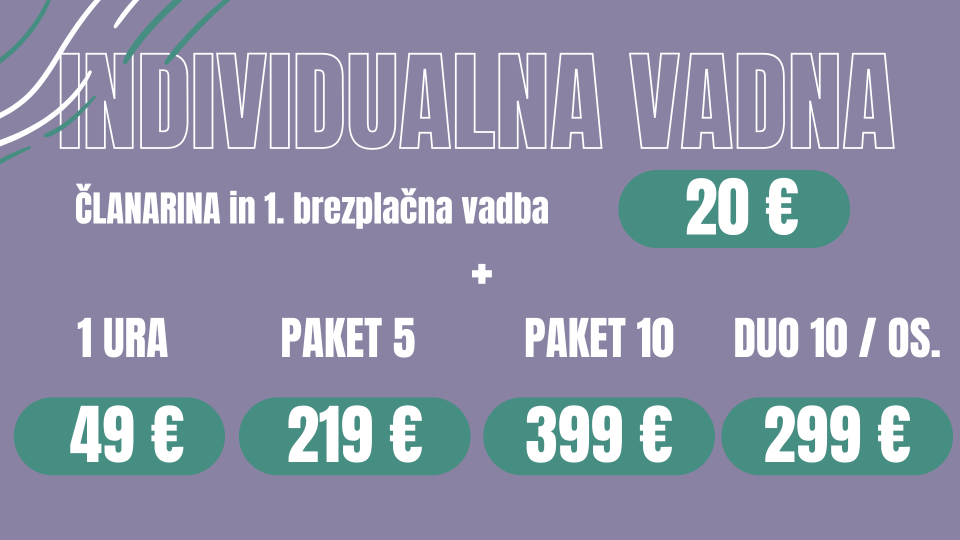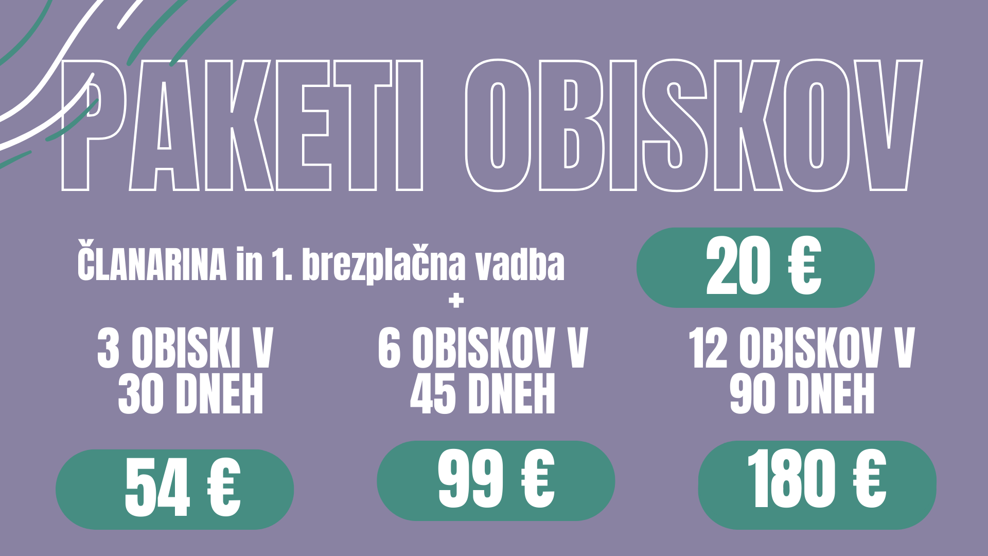 ČLANARINA + 1 brezplačna vadba - 20 eur
